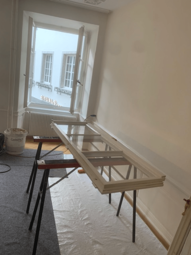 Also: Besprechen sie sich mit der Handwerkerin, bevor sie Holz zersägen oder rausreissen, Fenster einfach ersetzen, Rundungen begradigen, Klinkerböden aufspitzen, Bauelemente entfernen. Oft gilt es die Eigenart des Altstadthauses erst sehen zu lernen. Die eingelegte hölzerne Türe, der historische Beschlag, der Klinkerboden, das Parkett, die Stuckatur unter den gefühlt hundert Farbschichten oder die spezielle Holzverbindung – das alles gibt dem Altstadthaus Haus seinen eigenen Charakter und bestimmt die erhaltenswerte weil einzigartige Wohnatmosphäre. Durch bedachte Entscheide und sorgfältigem Handwerk können meist Fenster ertüchtigt, charakteristische Türen erhalten, Treppengeländer durch neu integrierte Handläufe saniert und ihre Funktion verbessert werden. Selbst die Auswahl, Art, Positionierung der Beleuchtung kann eine sanierte Altstadtwohnung entscheidend beeinflussen.